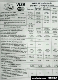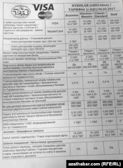 Банки Туркменистана ввели новые ограничения на сумму выдачи наличных средств по пластиковым картам внутри страны и за рубежом, а также увеличили стоимость банковских услуг.